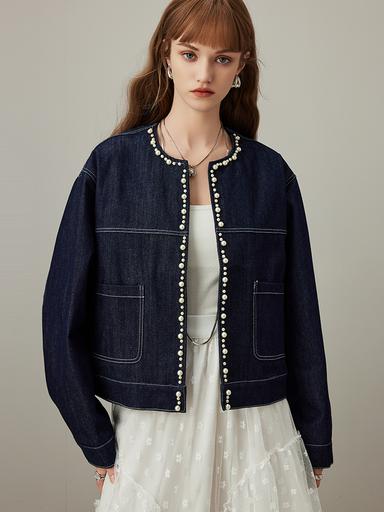 上品な女性らしさを引き立てる上着。クラシカルなデザインに白い袖口がアクセントとなり、優雅さを演出する。